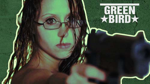 - Sexy chica en parodia de Angry Birds como Green Bird