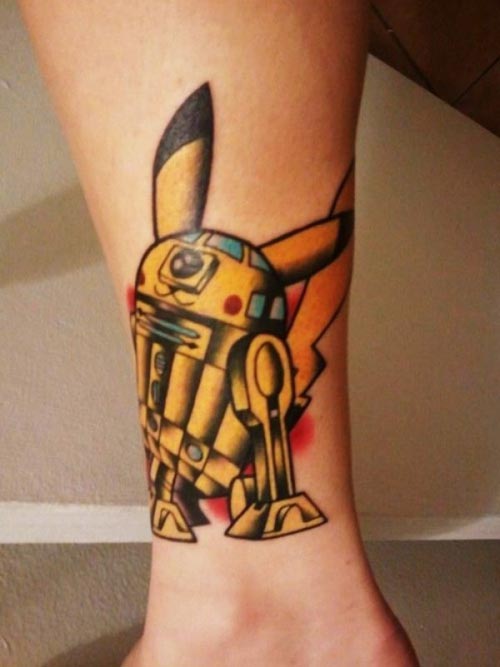 - Tatuaje de personajes de Pikachu y R2D2